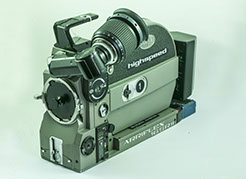16 mm cameras were designed for high demands of professionals. Many 35 mm feature films used 16 mm footage for its easy to carry, lighter, and more compact design. The negatives were then enlarged to 35 mm at the highest quality using an optical enlarger/printer. Arri SRII high speed could run at a top speed of 150 f/s, and 200 f/s with custom modifications. The body design in Arri cameras is so versatile. There is an accessory interface above the lens mount in 16ST (left), and below the lens mount on SR cameras (right) to accept a bracket securing a mat box, follow focus gear, etc. All the electrical contacts for speed control are placed on the back of the camera. Through a designer's eyes, the RED Epic body design is a close copy of the Arri SR body design: Same placement of the accessory shoe, electrical connections, viewfinder, and and grip mount.